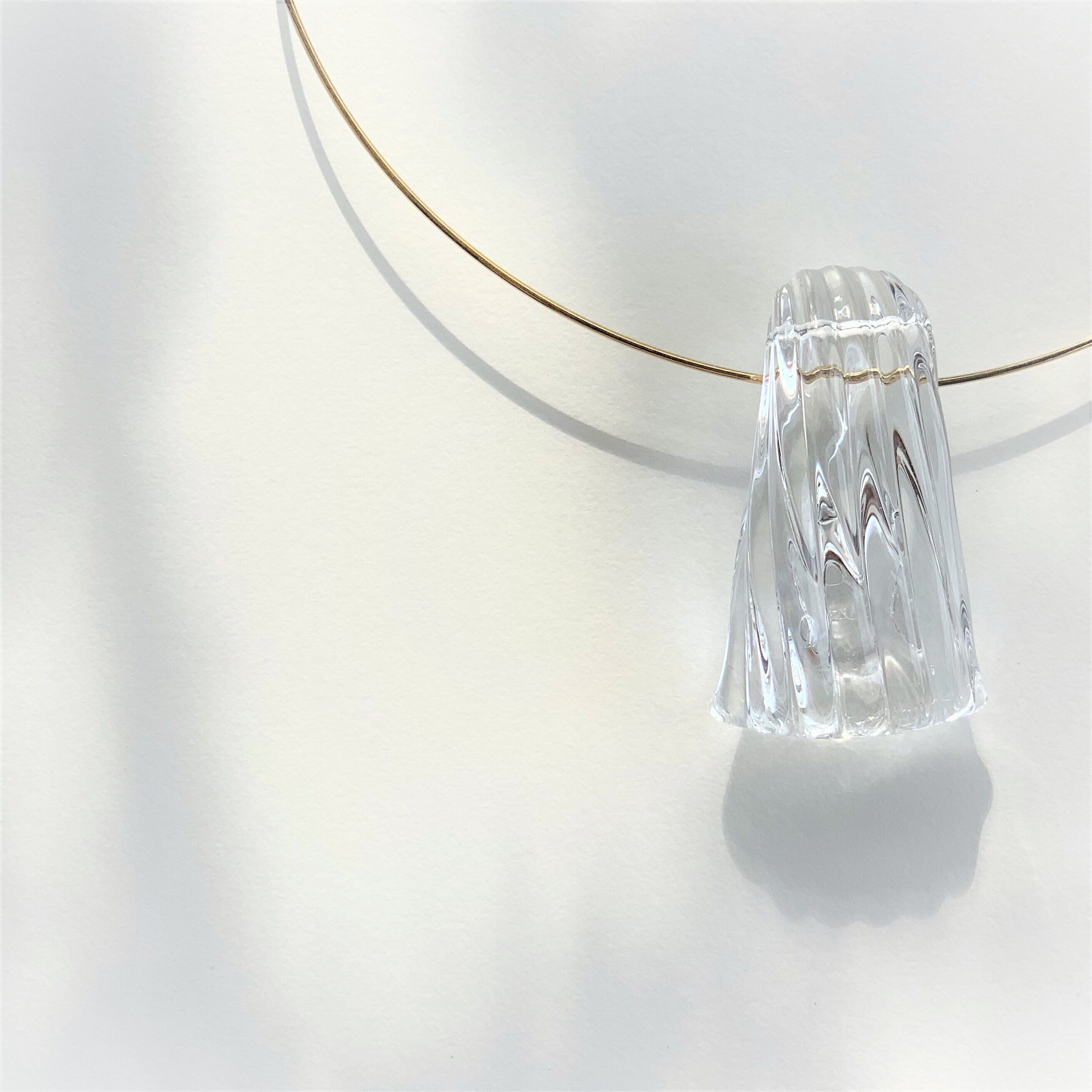 透明感が美しいペンダントです。 クリアのガラスに凹凸をつけることで輝きが増し、夏にぴったりのシンプルながらも存在感のある一品となっております。
