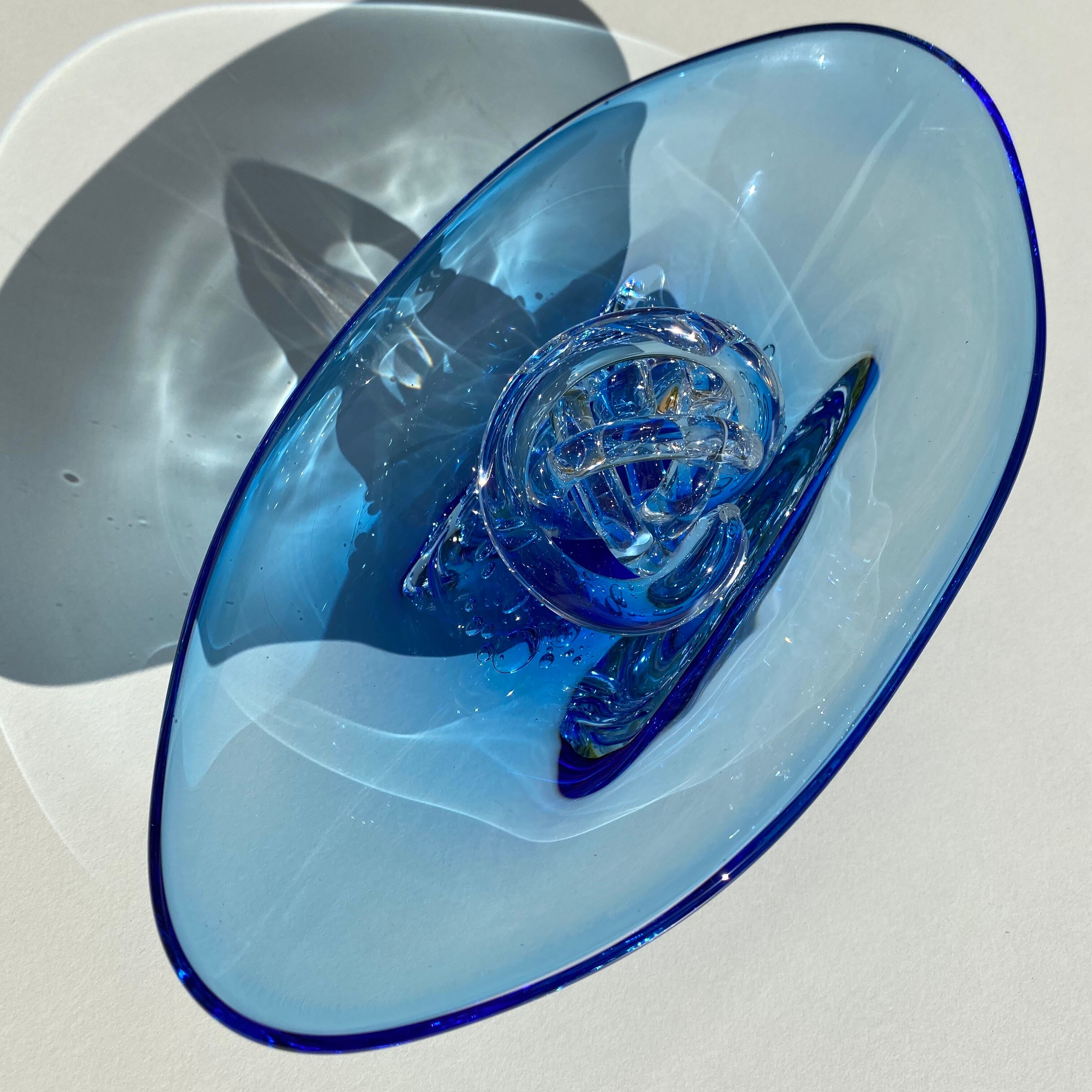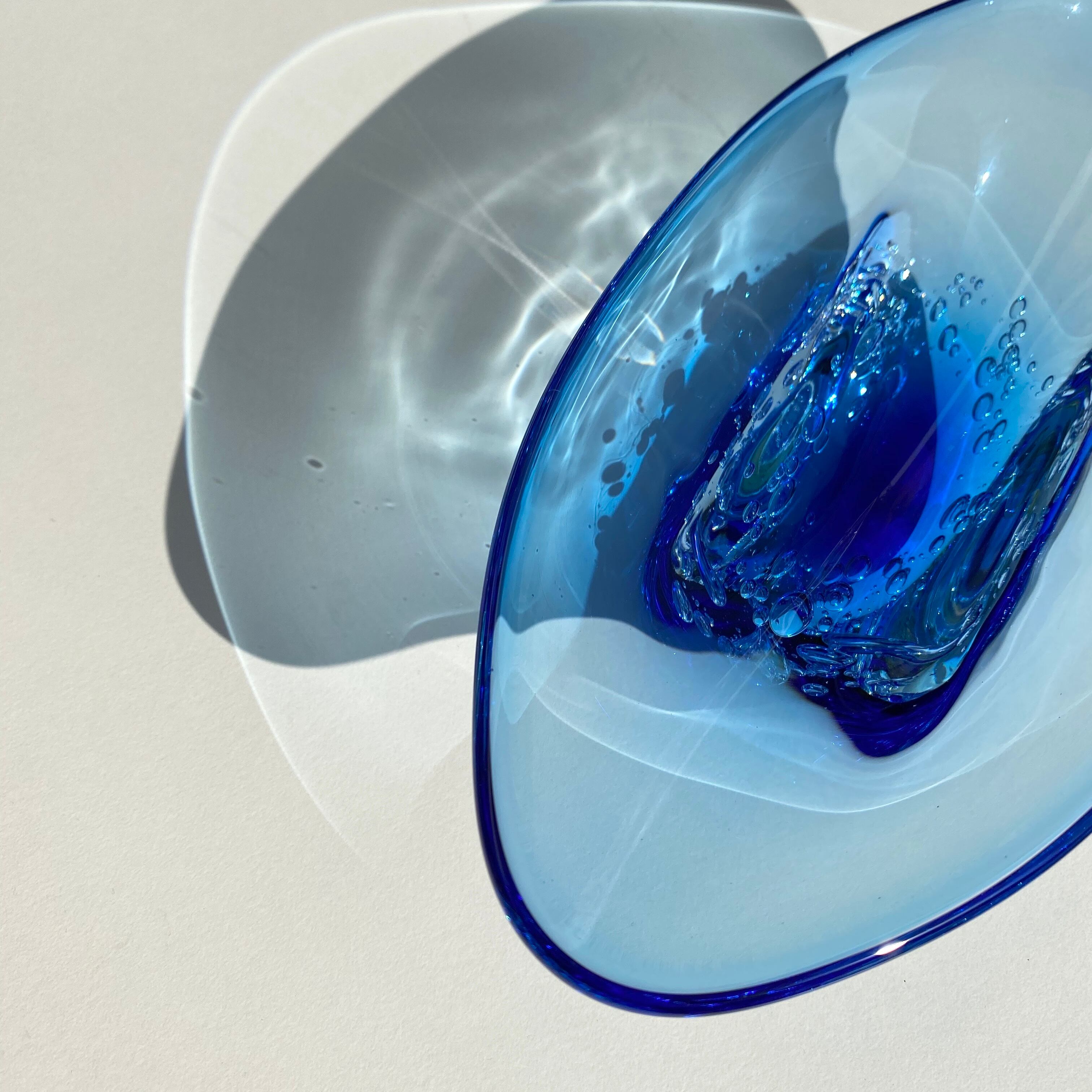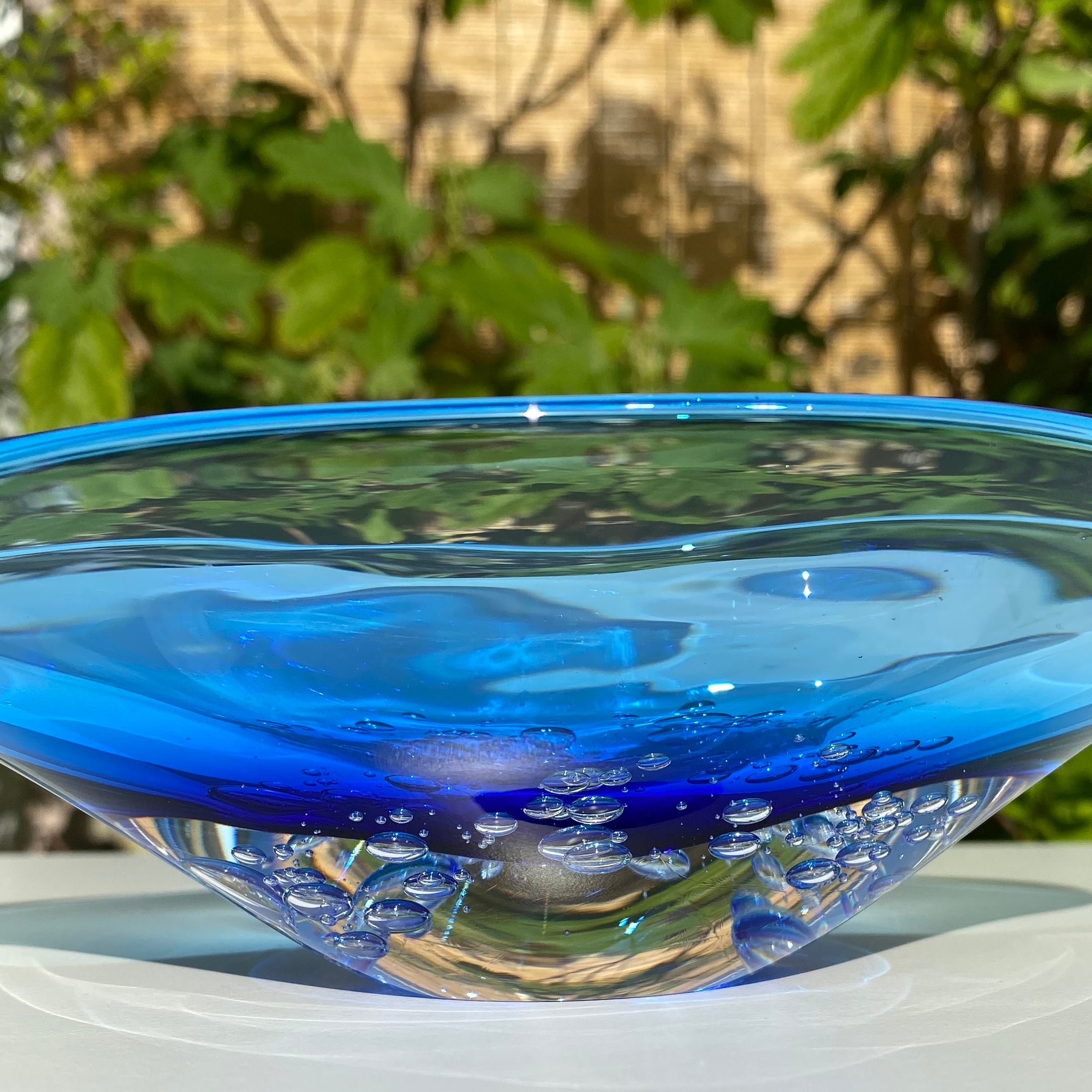 遠心力で形作ったこの鉢は唯一無二の優しいフォルムが特徴です。底にクリアのガラスをためて泡を入れた美しいデザインになっております。
