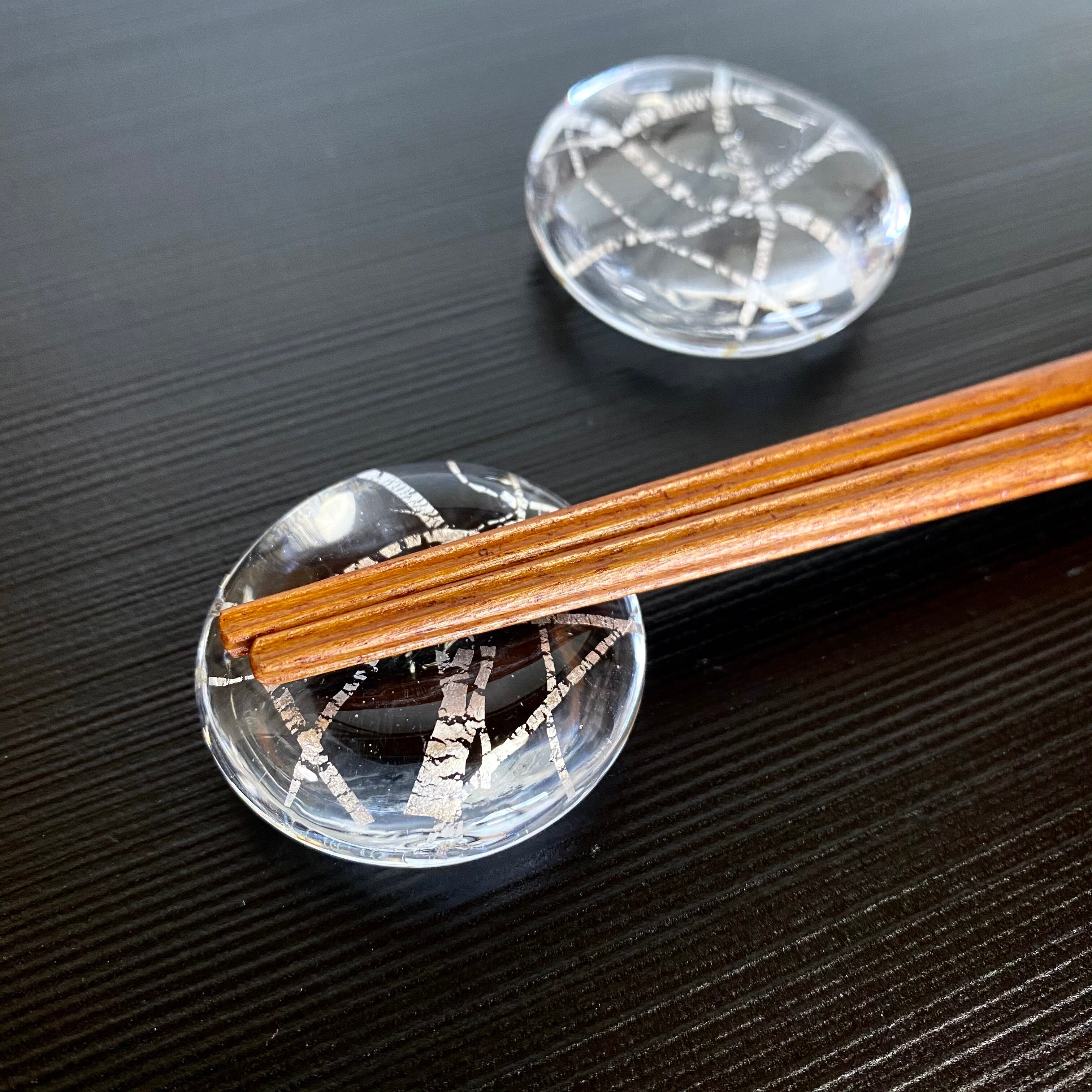 銀箔の短冊を散りばめたお箸置きです。 金箔のお箸置きもご用意しております^^ ※一つのお値段となります。 サイズ:約3.8cm -ご購入の際の注意点- ※当作品は耐熱性ではございません。 熱湯、電子レンジ、冷凍庫、食器洗浄・乾燥機などはお使いになりませぬ様、 お願い申し上げます。 ※ひとつひとつ手作りになりますので、多少サイズの誤差や箔の入り方が 異なります。 在庫の数に関わらず、ご注文を頂いてから制作致します。