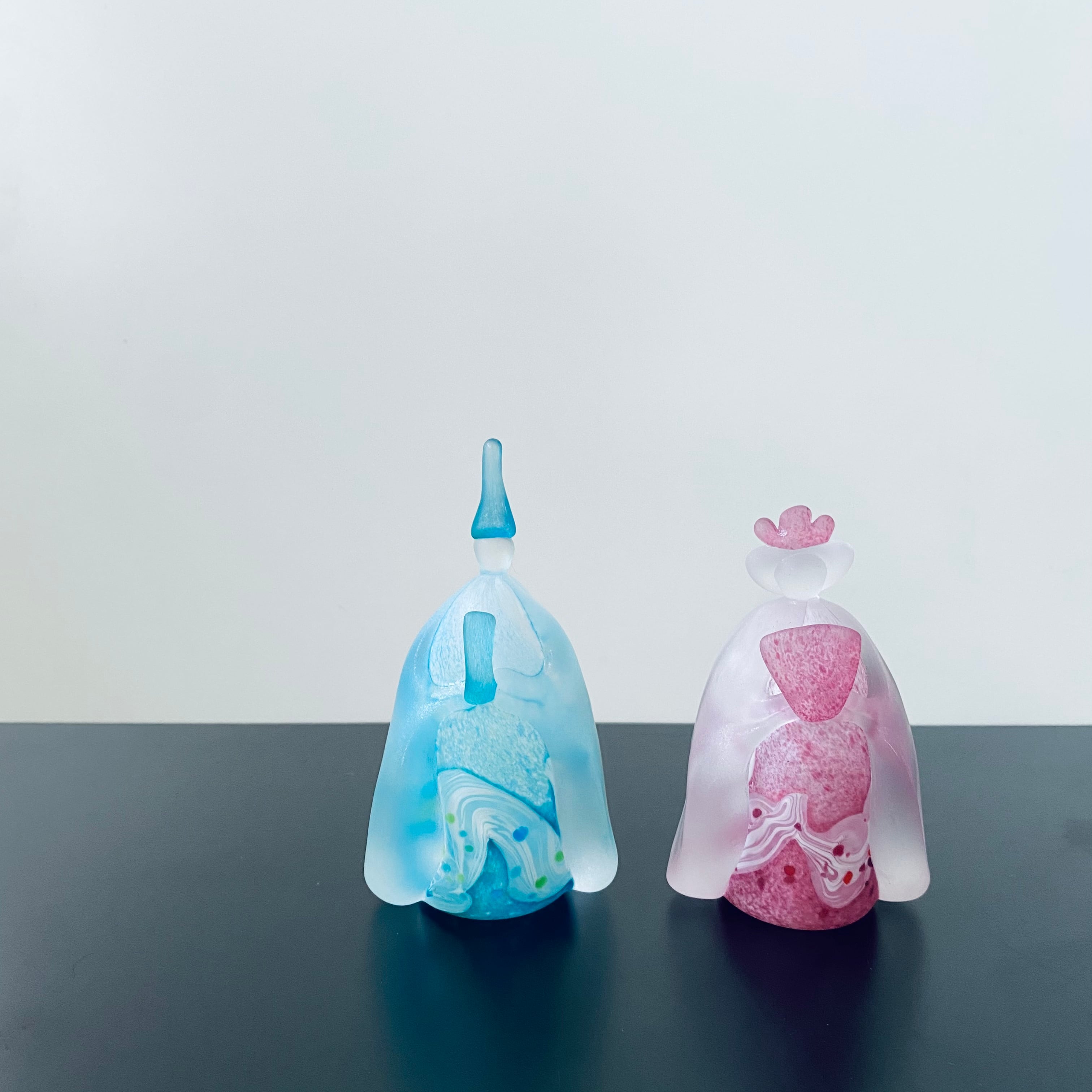 ブルーとピンクのマットなガラス雛です。 マットな質感が春のあたたかみと優しさを感じさせてくれます。 男雛 高さ11.5cm 女雛 高さ10cm